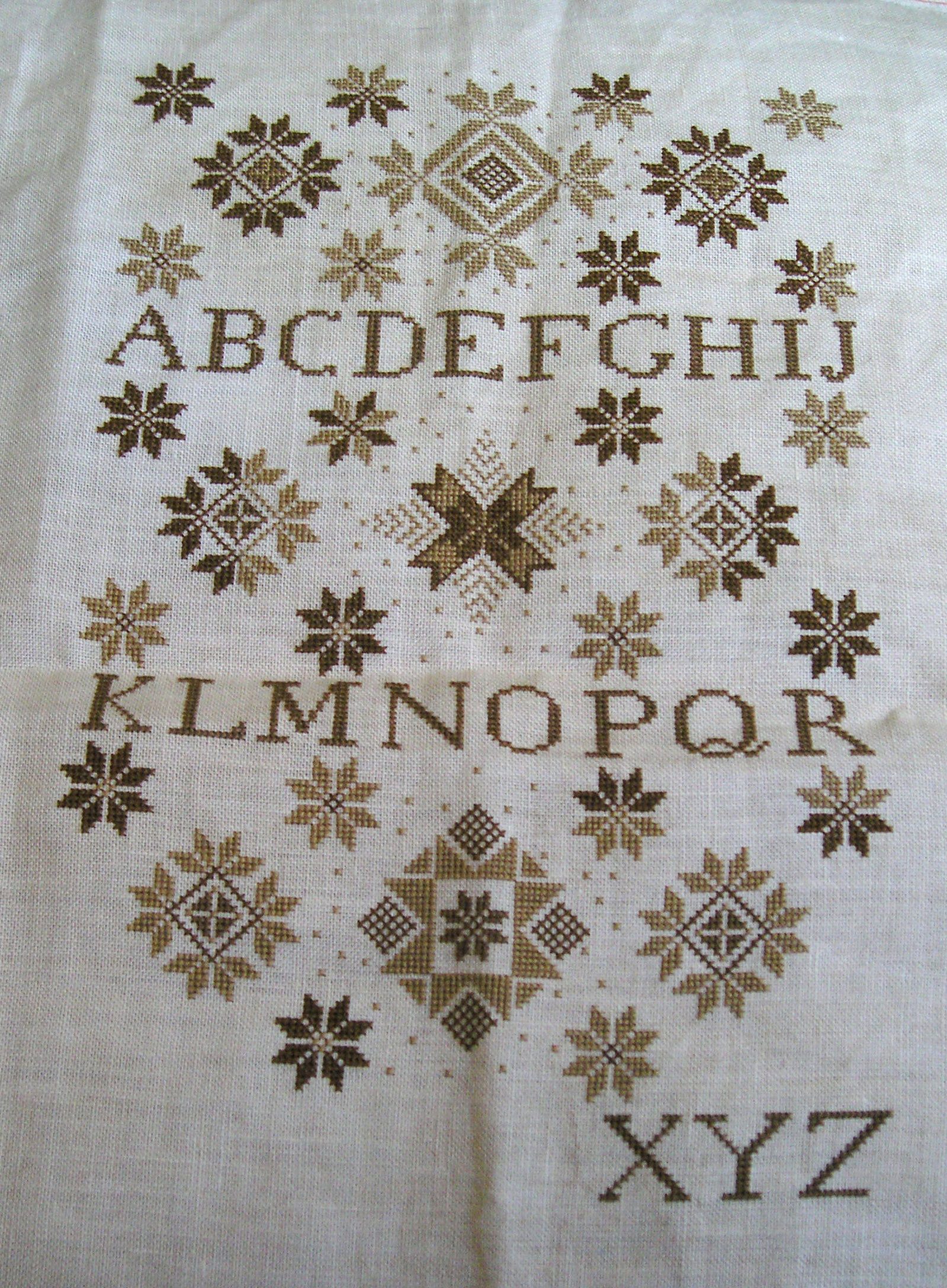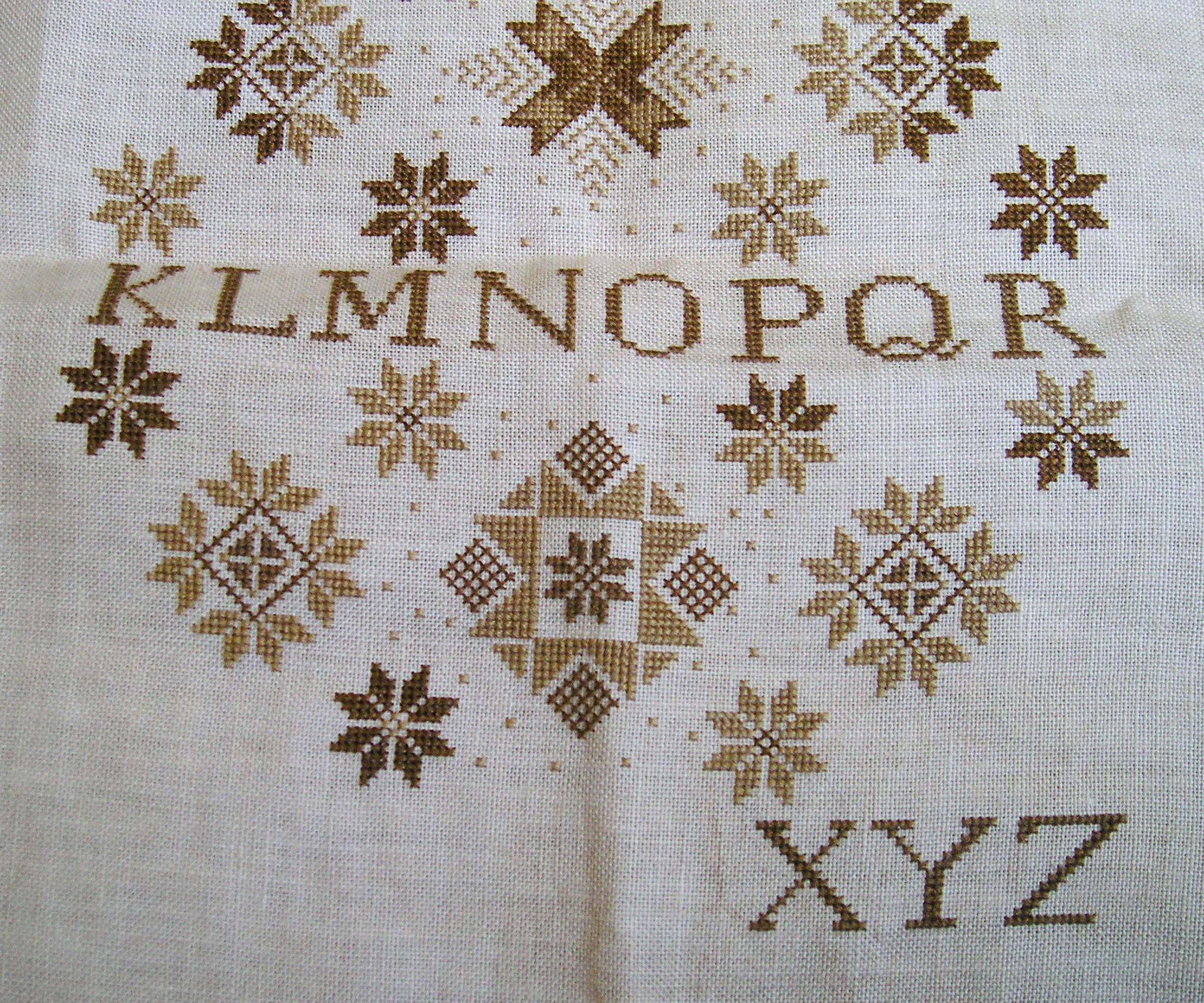To the left is a photo focusing on the progress made from hours 20 to 30, basically everything below the first row of letters. If you want to see the last progress shot, taken after 20 hours of stitching, go here.