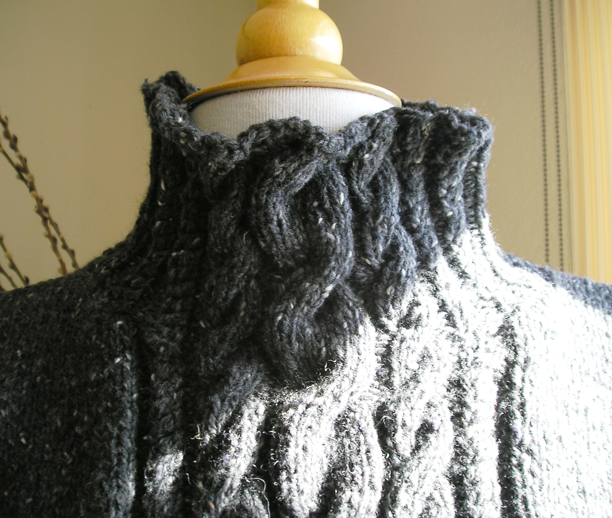 Karen's Sweater Collar Close-upTo the right, you can see a picture of the results (pardon the shadows). The extra balls matched perfectly for both projects–talk about great dye lot karma!