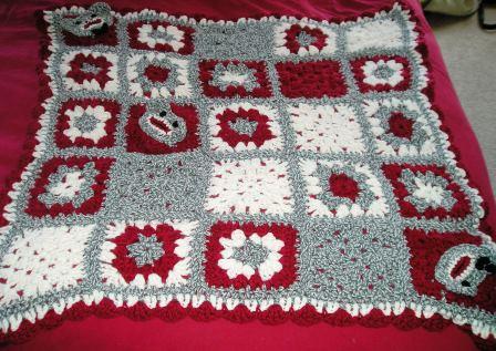 Believe me, these faces are not as creepy in person as they are in these photos. You’ll just have to take my word for it since the photography gods are not working in my favor today. This is actually quite a cute blanket.