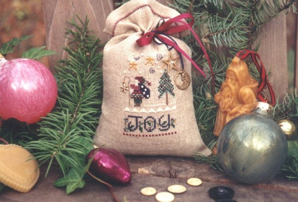 Overall, this little Shepherd’s Bush kit was a quick stitch except for the beading (again, I had forgotten how long that takes), and the results are quite nice. The kit calls for the design to be made into a little treat bag (see below), but, honestly, I can’t imagine using it as a bag so I’ve decided to make it into an ornament instead.